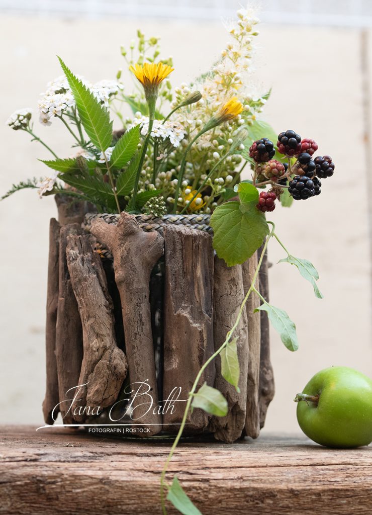 Für ein gelungenes Stillleben sind Dekoelemente und Blumen vorhanden.