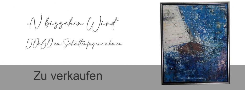 Regatta. Auf dem silber-glitzernden Meer konkurrieren die fröhlich bunten Segler um den ersten Platz. Dabei sieht das Meer so aus, aus wollte es die Segler in einer üppigen Welle verschlingen. Auch dieses Bild ist gespachtelt, ich habe nur einmal den Pinsel angesetzt und das auch nur, um meine Initialen zu verewigen. Es hat bereits ein Zuhause gefunden und verzaubert Feriengäste mit seinem exklusiven, maritimen Charme.